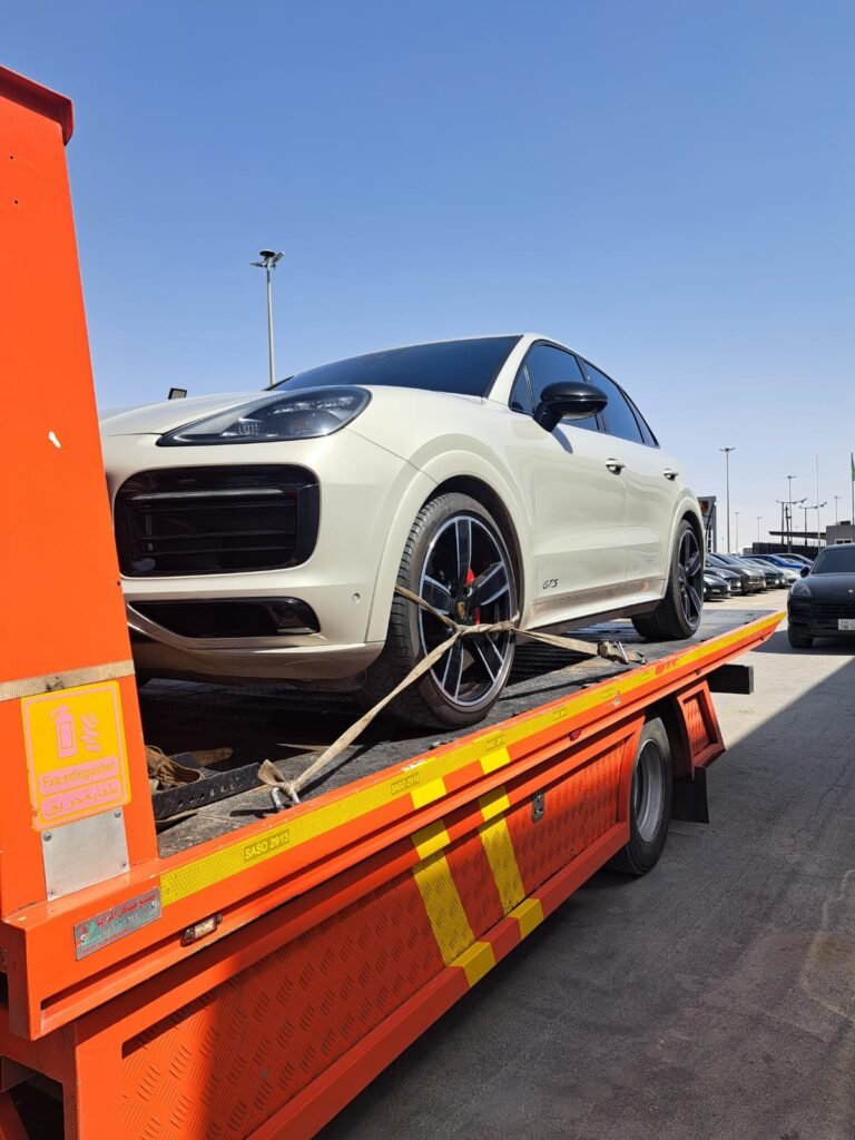 سطحه هيدروليك مجهزة لنقلالدبابات والسيارات الرياضية داخل الرياض وخارجها بأمان كامل وبدون خدوش.